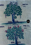 本書は手書きのアーユル・ヴェーダ本草図譜で、10巻より成る。そのうち8巻は植物篇で約800種類を扱い、1巻は動物篇で約100種類、1巻は鉱物篇で約70種類が扱われている。植物篇は1頁に1種類の植物が、葉はもちろん、花と実と根が必ず描かれ、生育場所を示す背景も描き込まれている。すべて着色図である。樹木が多いがその他の有用植物、とくに野菜や穀類は描写が精細で、たくさんの品種が紹介されている。イネは18種類、サトウキビは13種類も描かれている。ただし、区別がよくわからないものもある。裏面にはその植物に関する古典の記事がサンスクリット文とネパール文で記され、多くの言語によるその植物名が列記されている。アーユル・ヴェーダはインドに伝わる伝統医学の体系で、体全体の調和を保って健康に長寿を保つことに基本が置かれる。記事を読んでみると、それぞれの植物の効能や適用症もさることながら、西洋医学とは異なった考え方があることがわかり、興味深い。もっとも、図と記事が対応しているかどうかは検討を要する。