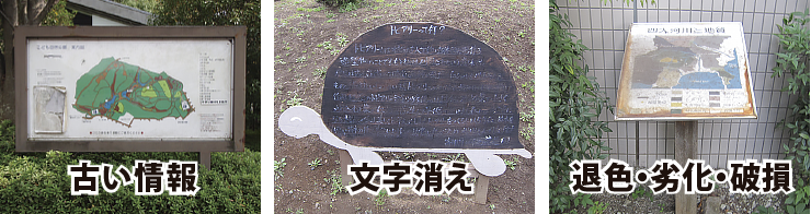 情報が古かったり、読み取ることができないサインは、機能しないばかりか、誤認を招きます。